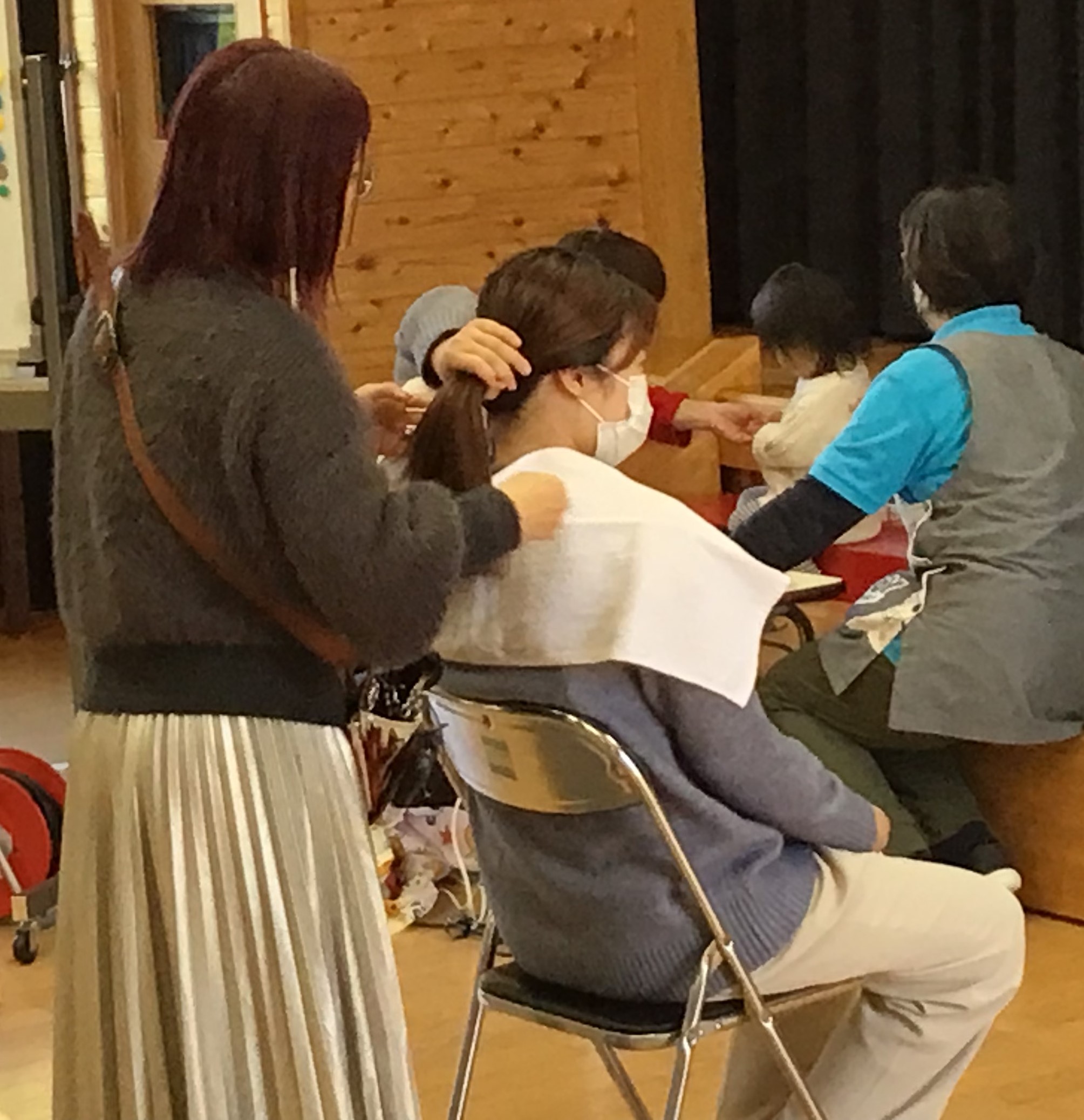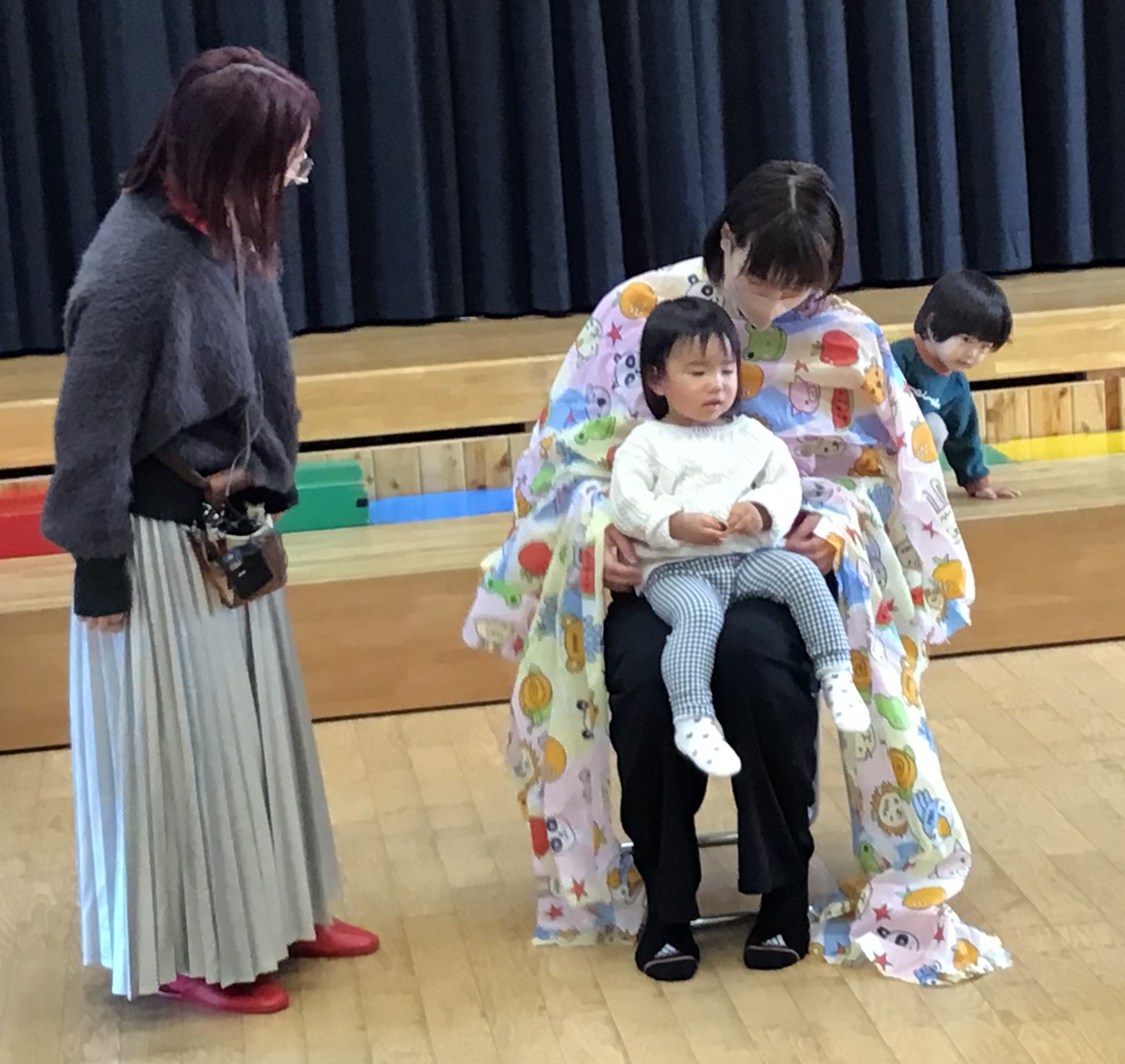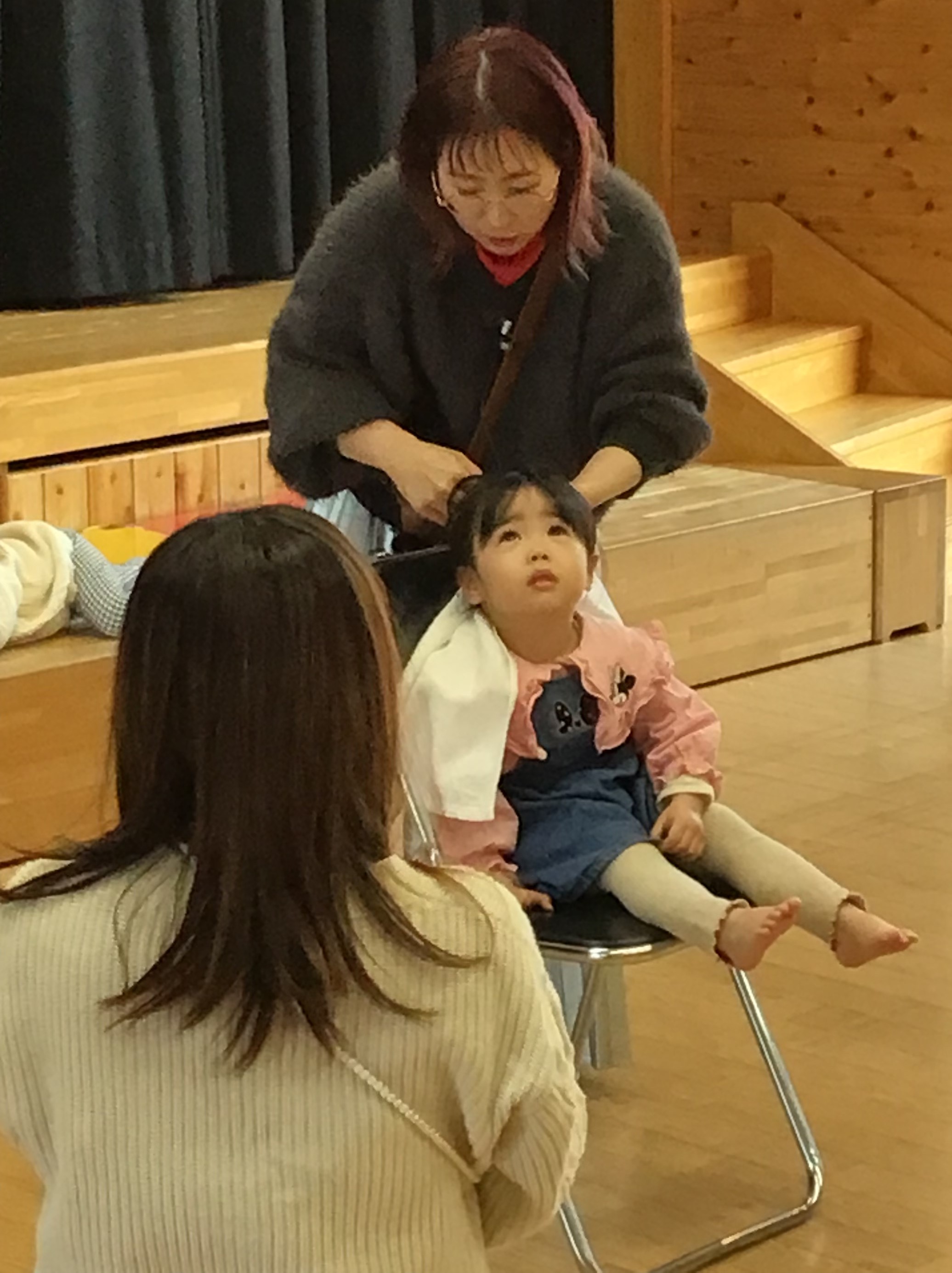 今回は美容師さんに来ていただき、お子さんの前髪カット等を