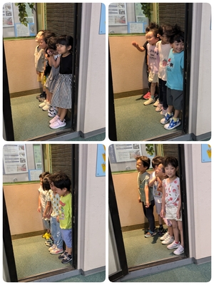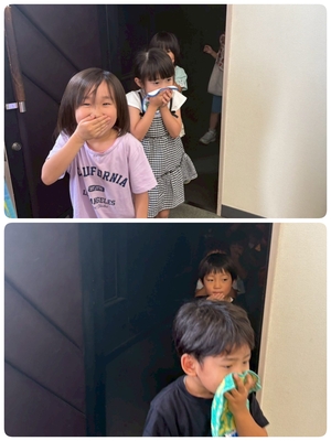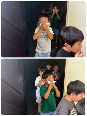 煙を吸わないようにハンカチや手で口や鼻を覆い、上手に出口から出て来れた子どもたちでした(^^)