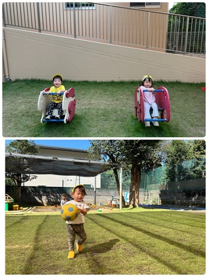 様子のお友達も見られましたが、今では園庭に着くとみんな駆け出してます♪